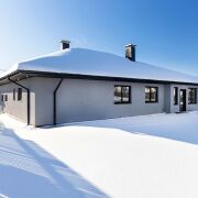 - Кровля из финской модульной черепицы Ruukki FRIGGE (утепление по стропилам 15 см и 20 см по потолку). Скрытая ливневая система с отводом в канализацию.