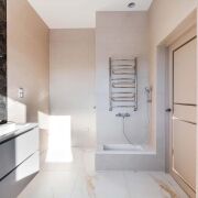 - В доме теплые водяные полы, напольное покрытие – дубовая паркетная доска и ламинат бельгийского производства, на стенах декоративная штукатурка и краска ITALIKA итальянского производства. Двери, плинтус и порталы из ольхи, подоконники из натурального камня лабрадорита, испанская плитка. Установлена сантехника Jacob Delafon и Laufen. Деревянные энергосберегающие стеклопакеты производства «ГРИС».