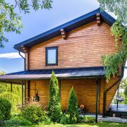 -Коттедж возведен из клеёного бруса 21 см с защитной пропиткой Tikkurila, что гарантирует долговечность и отличный внешний вид.