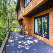 -Дом радует стильной отделкой из натурального дерева и продуманной архитектурой с большой крытой террасой, площадью 70 м2, которая станет идеальным местом для летних вечеров и приёма гостей.