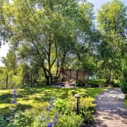 -Ухоженный ландшафт с газоном, мощеными дорожками и цветущими клумбами. Большие деревья дарят приятную тень. Обустроено уютное место для костра с дизайнерской беседкой, что превращает вечерние посиделки в особое событие. Здесь вы будете по-настоящему отдыхать душой!