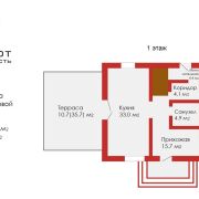 -на 1-ом этаже размещены: кухня, прихожая, две жилые комнаты, коридор, санузел, мини-котельная;