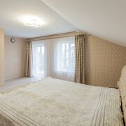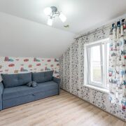 Дом очень уютный, практичный и энергоэфективный. На первом этаже расположена просторная кухня-гостиная с выходом на террасу, комната для гостей, санузел, топочная, коридор. На втором этаже четыре изолированные комнаты, одна из которых имеет выход на балкон, и санузел.