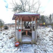 На участке для отдыха ждут: беседка, мангал, качели и детский спортивный комплекс.
