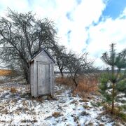 Двор: природный газон с кустарниками и деревьями, колодец с ключевой питьевой водой.
