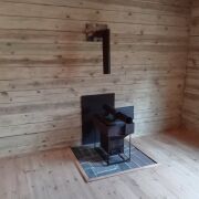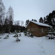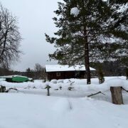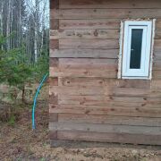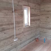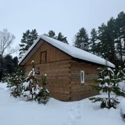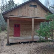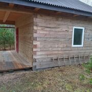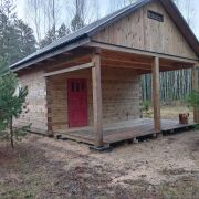 Сам дом бревенчатый с террасой, крыша - ондувилла. 20.5 м2. Установлена печь, сделаны выводы для воды.