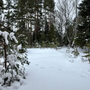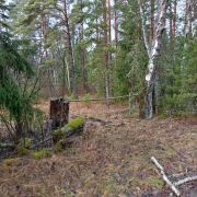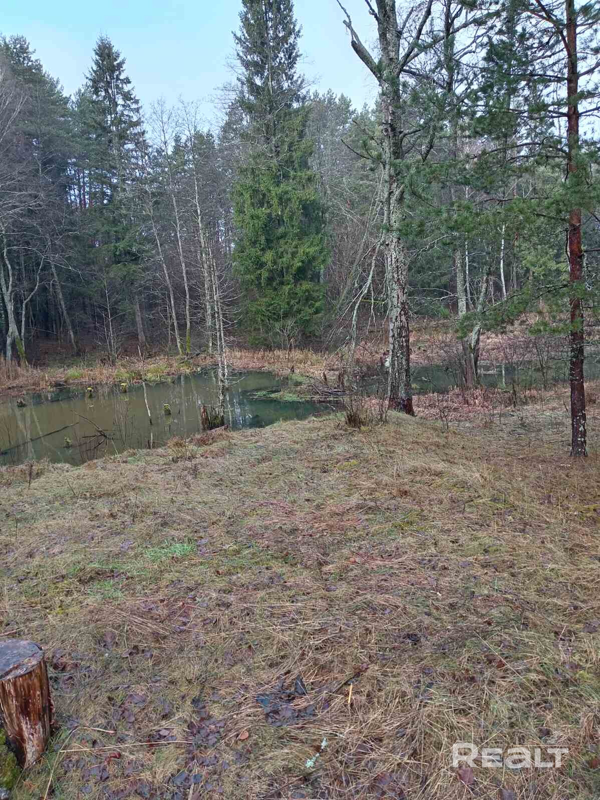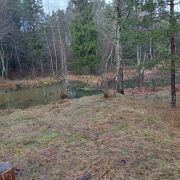 Просторный участок (25 соток) усеян молодыми елями, рядом с участком запруда бобров.