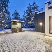 3. Авто-зона: Капитальный навес на два авто. Установлена зарядная станция для электромобилей, сила тока 32А. Есть гостевая площадка для автомобилей.