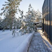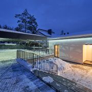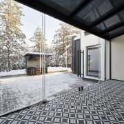 2. Панорамная терраса: Остекление в пол позволяет наслаждаться видом на сосны, оставаясь в тепле и уюте.
