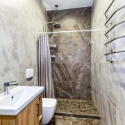 -Санузел облицован стильной плиткой и оборудован качественной сантехникой.