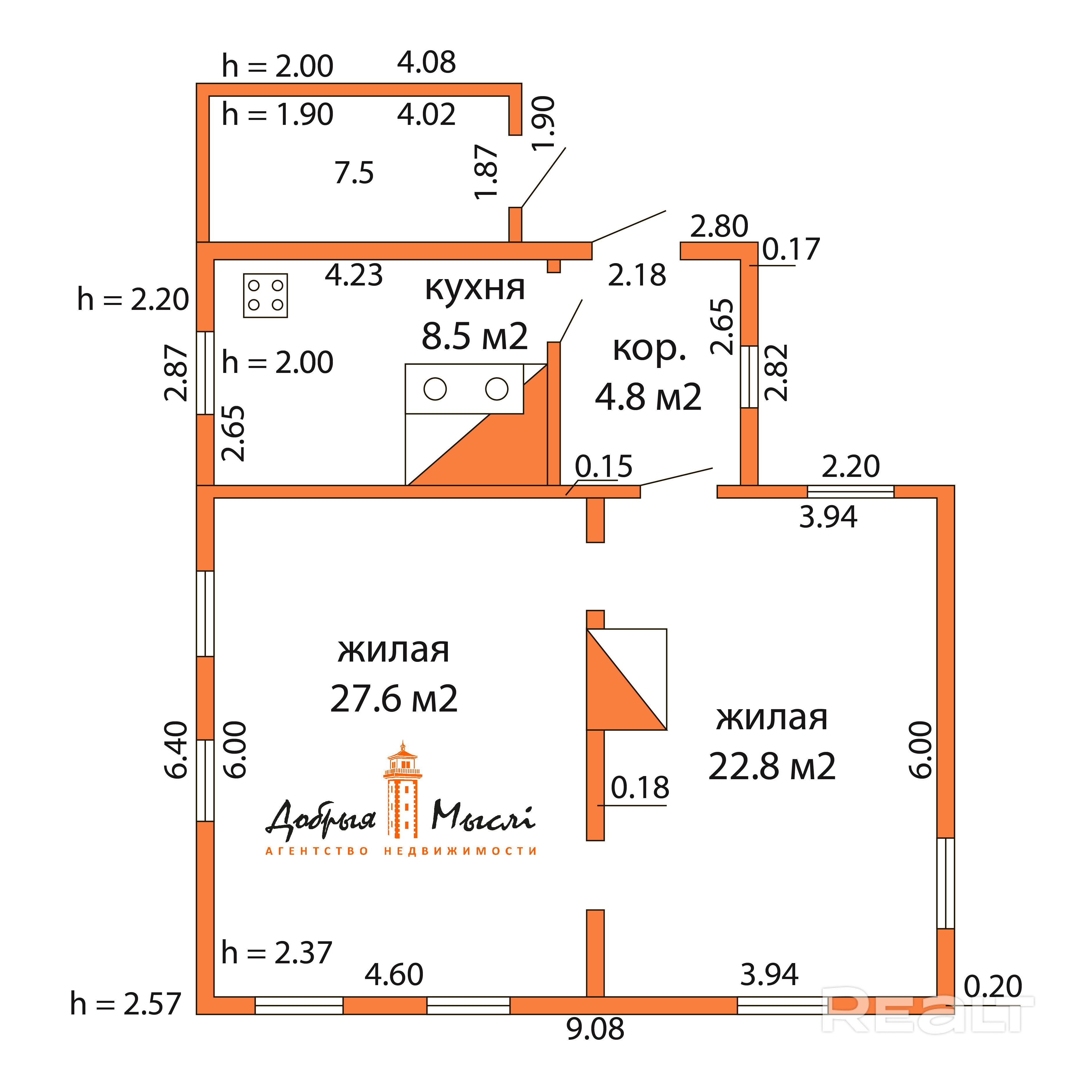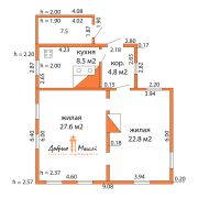 Дом построен в 1954 г. Общая площадь дома 63,7 кв.м., по СНБ 71,2 кв.м., жилая 50,4 кв.м., кухни 8,5 кв.м. Высокие потолки, 2 огромные комнаты, кухня, прихожая, кладовка.