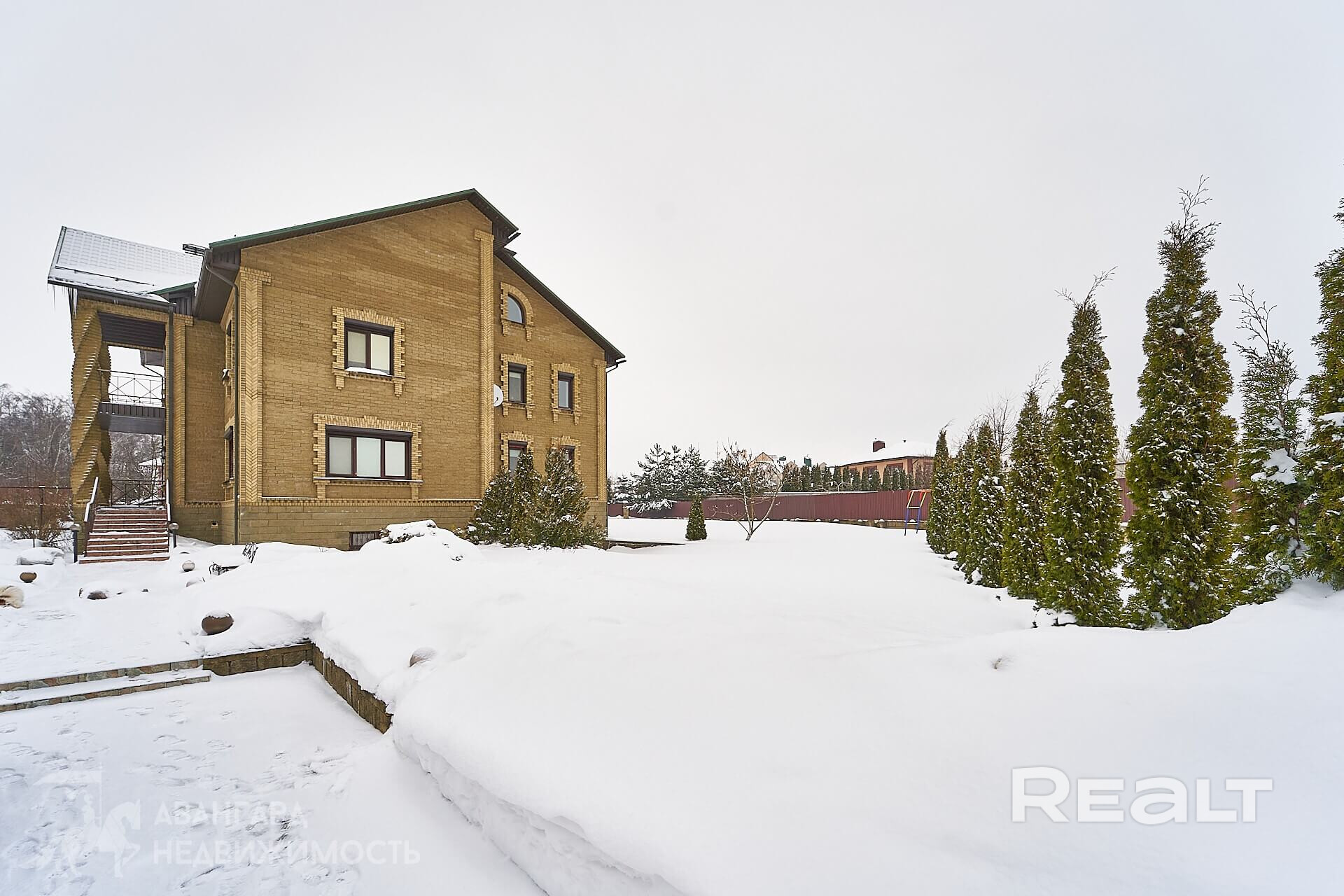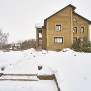 Материал стен – кирпич. Фасад утеплен и отделан декоративным камнем.