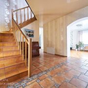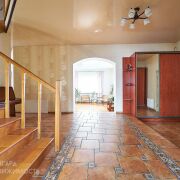 В доме 3 уровня. На первом расположена просторная кухня с выходом на террасу, гостиная с камином, кабинет и большой санузел.