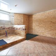 На цокольном уровне размещена сауна с душевой, просторная зона отдыха с баром, гараж и топочная. Есть возможность установки купели, бассейна, джакузи.