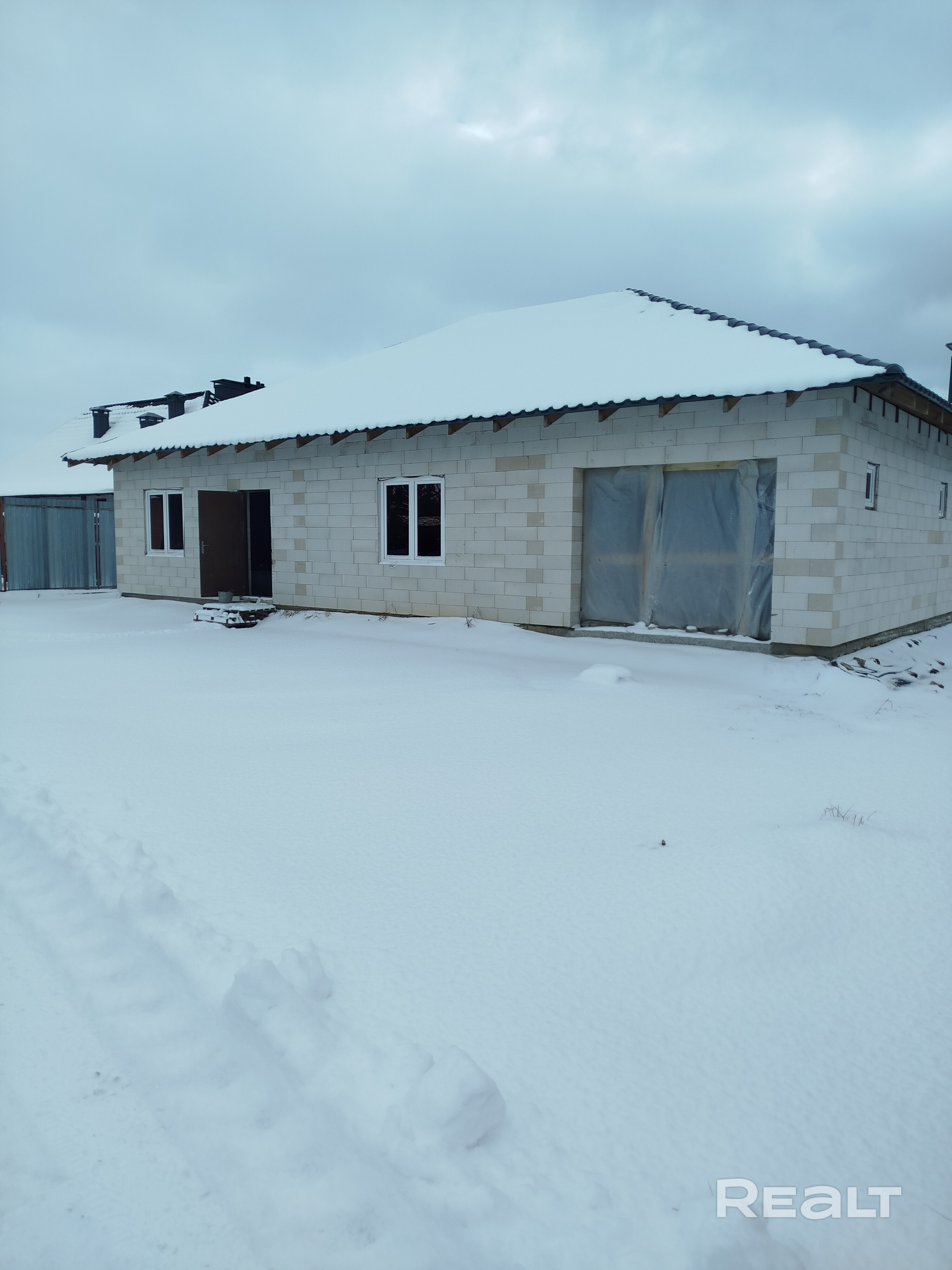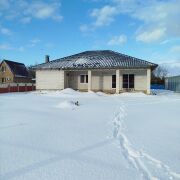 Площадь дома 150 м.кв. с готовым проектом. Вы можете завершить строительство под свой вкус, так как межкомнатные перегородки еще не возведены. Что уже сделано - Коробка из газосиликатного блока - Двери и окна - Крыша из металлочерепицы - Разведена канализация внутри дома - Залит черновой пол с армированием - В доме имеется скважина - На участке подведено трехфазное электричество Панорамные окна предоставляют великолепный вид на лес и выход на террасу. 13 км от города.