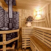 - Баня из оцилиндрованной сосны с купелью из лиственницы и парной из ольхи.
