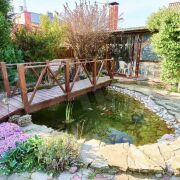 Зона барбекю полностью оборудована, печь, стол, рядом пруд !