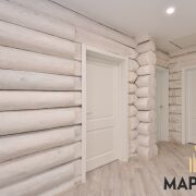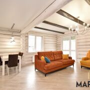 Дом ручной рубки, перекрытия – в 2 слоя по 10см, фундамент – свайно-ленточный, песчаный грунт. Выдержана технология усадки дома – 2 года (начало строительства – 2021г.), в 2023г.были завершены отделочные работы.