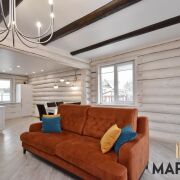 Планировка дома продумана полностью до мелочей, выполнен новый ремонт с применением высококачественных материалов. Три спальни (8 основных спальных мест + 2 гостевых) и просторная гостиная с кухней. Вся мебель изготовлена под заказ, кухня Egger, встроенная техника BOSCH, плитка – пр-во Италия, сантехника Grohe и Hansgrohe, радиаторы Kermi, светильники – пр-во Германия, розетки и выключатели премиального бренда Jung. Установлено 2 бойлера, теплые полы, трехкамерные стеклопакеты, спутниковое TV, охранная сигнализация, антенна для усилителя интернета. Санузел с душевой кабиной, псевдобиде, инсталляцией, стиральной машиной.