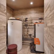 Есть своя скважина с артезианской водой, канализация – местная (2 колодца по 3 кольца), насосы Grundfos, котел – на дровах.