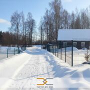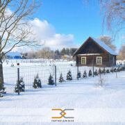 Участок ровный, огорожен со всех сторон евросеткой, частично по периметру высажены туи.