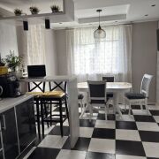 · Первый этаж: Просторная кухня (20,2 м2) с выходом на террасу, две жилые комнаты, санузел, котельная и холл.