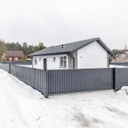 Участок 8,49 соток, огорожен металлопрофилем, откатные ворота с возможностью установки электропривода, ровный правильной формы.