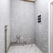 Стены: газосиликатные блоки 30см+утеплитель 50мм, оштукатурен, покрашен. Перекрытия утеплены каменной ватой. Перегородки в доме из газосиликатных блоков 120мм.