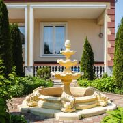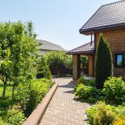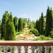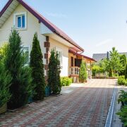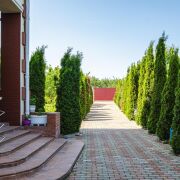 -25 соток ухоженной территории с вечнозелёной аллеей, ландшафтным дизайном и живописными видами на природу. Просторный двор с брусчаткой, фонтаном, уютной зоной отдыха, аккуратными клумбами и отдельно стоящей баней и летней кухней создаёт атмосферу уюта и уединения.