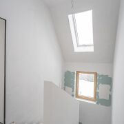 Стильные деревянные двухкамерные энергоэффективные стеклопакеты и мансардные окна Velux сохранят тепло дома в любую погоду.