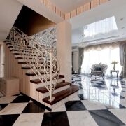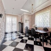 - Первый этаж: Просторная гостиная (29кв.м.) с кухней (30 кв.м.), кабинет, санузел, бильярдная, котельная