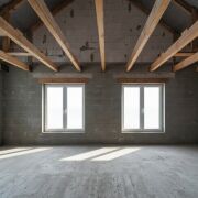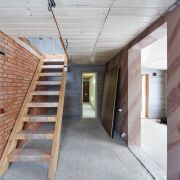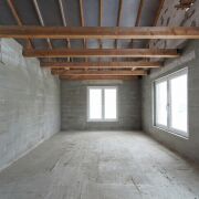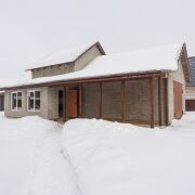 Дом в данный момент одноэтажный 61,6 кв.м (по первому этажу), имеется высокий мансардный этаж, где можно расположить 2 - 3 комнаты с санузлом и личными гардеробными.