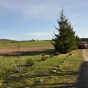 На участке высажены и уже плодоносят сортовые яблони, со стороны соседей высажены взрослые туи.