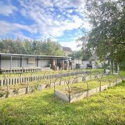 - На участке растут плодовые деревья: 3 грецких ореха, яблони, груши, черешня, сливы и персик. Посажен крыжовник и малина. Сделаны высокие грядки. Участок огорожен забором из металлического блок хауса.