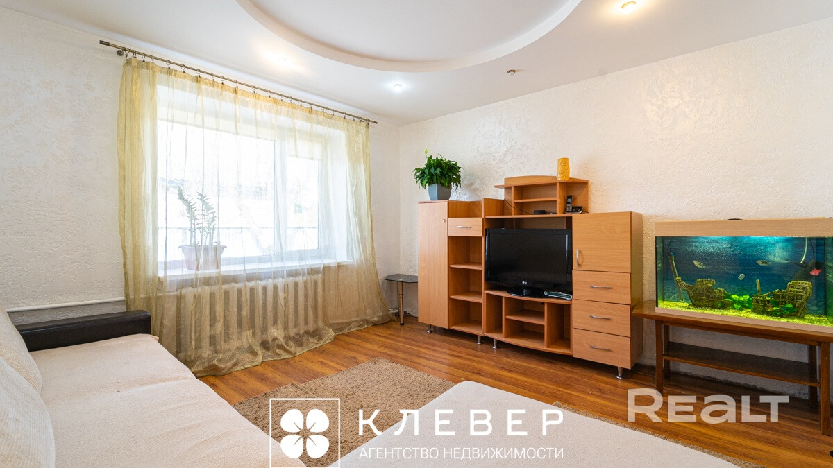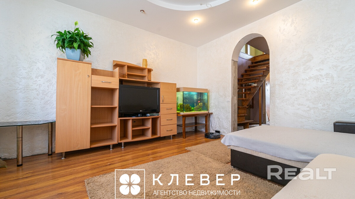 Три отдельные комнаты: на первом этаже большая и уютная гостиная, просторная кухня, совмещенный санузел.