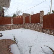 На участке установлена закрытая беседка из латвийского клинкерного кирпича с барбекю, коптильней, русской печкой и казаном. Дверцы с закаленным стеклом из славацкого чугуна.