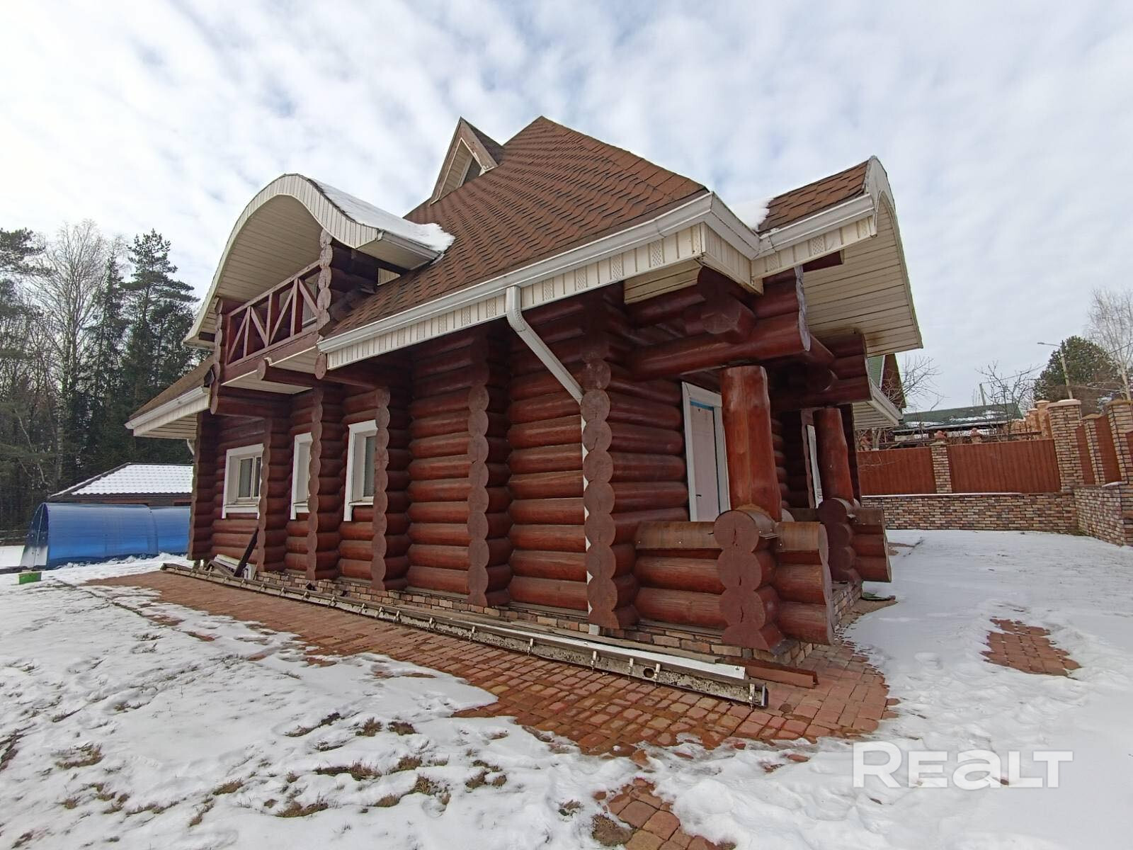 Дом построен по проекту знаменитого архитектора. Аналогов в Республике Беларусь единицы. Дом выполнен из бруса архангельской сосны 32 диаметра зимней грамотной ручной рубки ручной зимней цилиндровки. Бревно, из которого сложен дом, обеспечивает идеальный температурный режим и баланс влажности. Тепло зимой и прохладно летом.