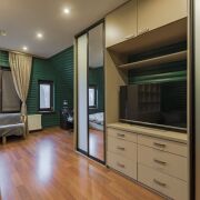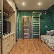 *** Ванная с постирочной (5.2 м); туалет. Большая гардеробная (9.6 м) с приватной зоной для дам. Прихожая со шкафом-купе – 8.6 м; !!! Второй этаж – это спальная зона. Спальня для взрослых (14 м); детская 12.2 м (в техпаспорте -холл); жилая комната (24.2 м). Туалет;