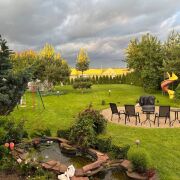 Каркасный бассейн с системой фильтрации и очистки воды. Беседка с мангалом-печкой, дубовым столом на 12 человек, тентованными шторами. Подведена вода и канализация. Теплица 8 м.