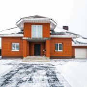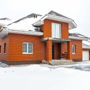- Стены из газосиликатных блоков + промежуточный слой утепления каменной ватой (80 мм) + внешняя отделка фирменным клинкерным кирпичом. Полная защита от холода, влаги и шума.
