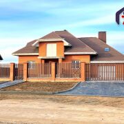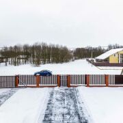 - Участок: Вымощены дорожки, засеян газон. По периметру уложена антикротовая сетка, установлен забор и откатные ворота.