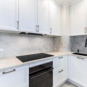 - Техника: Вся встроенная линейка — SMEG. Индукционная варочная панель с Wi-Fi синхронизацией с вытяжкой: умная система автоматически регулирует мощность. Духовой шкаф с функцией конвектомата. Дополняют встроенная посудомоечная машина Bosch топ-линейки и вместительный встроенный холодильник Bosch.