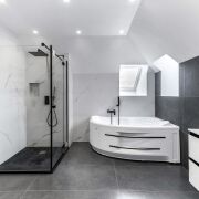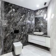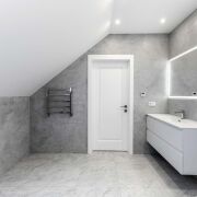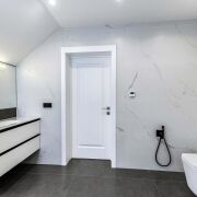 - Санузлы (3 шт.): на первом, втором этаже и отдельный в мастер-спальне. Отделка керамогранитом. Итальянская сантехника и скрытые инсталляции GROHE.