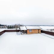 - На участке отдельное кирпичное строение под баню. Внутри стяжка, погреб с бетонными стенами, купель. Подведены отопление, канализация и электрика. Есть строительный проект. Будущему владельцу — использовать помещение по своему усмотрению.