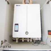 Есть все необходимые коммуникации для жизни: электричество, отопление (установлен газовый котел), вода, канализация.