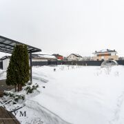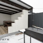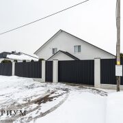 Участок ровный 0.12 га, огорожен по периметру забором (высота забора с фасадной стороны - 2,30 м.), установлены откатные ворота с автоматикой, есть отдельная беседка с погребом, качели, 2 парковочных места.