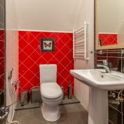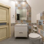 - Пол: плитка и ламинат.
