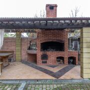 - Хозпостройки: зона барбекю и баня с бассейном.