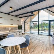 -Просторная гостиная с качественными панорамными окнами «в пол», стильная кухня с техникой и современный дизайн в каждой детали.
