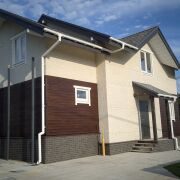 6. Вентилируемый фасад: планкен из лиственницы, фасадная плита KOMAK PLAT (цсп 10 мм) с мраморной крошкой. Планкен из лиственницы отличается высокой устойчивостью к гниению и насекомым, обладает естественной влагостойкостью. Обеспечивает высокую прочность, устойчивость к механическим повреждениям, атмосферным воздействиям и ультрафиолету. Не боится влаги и морозов. Способствует эффективной теплоизоляции и отводу влаги из конструкции, повышая энергоэффективность здания.